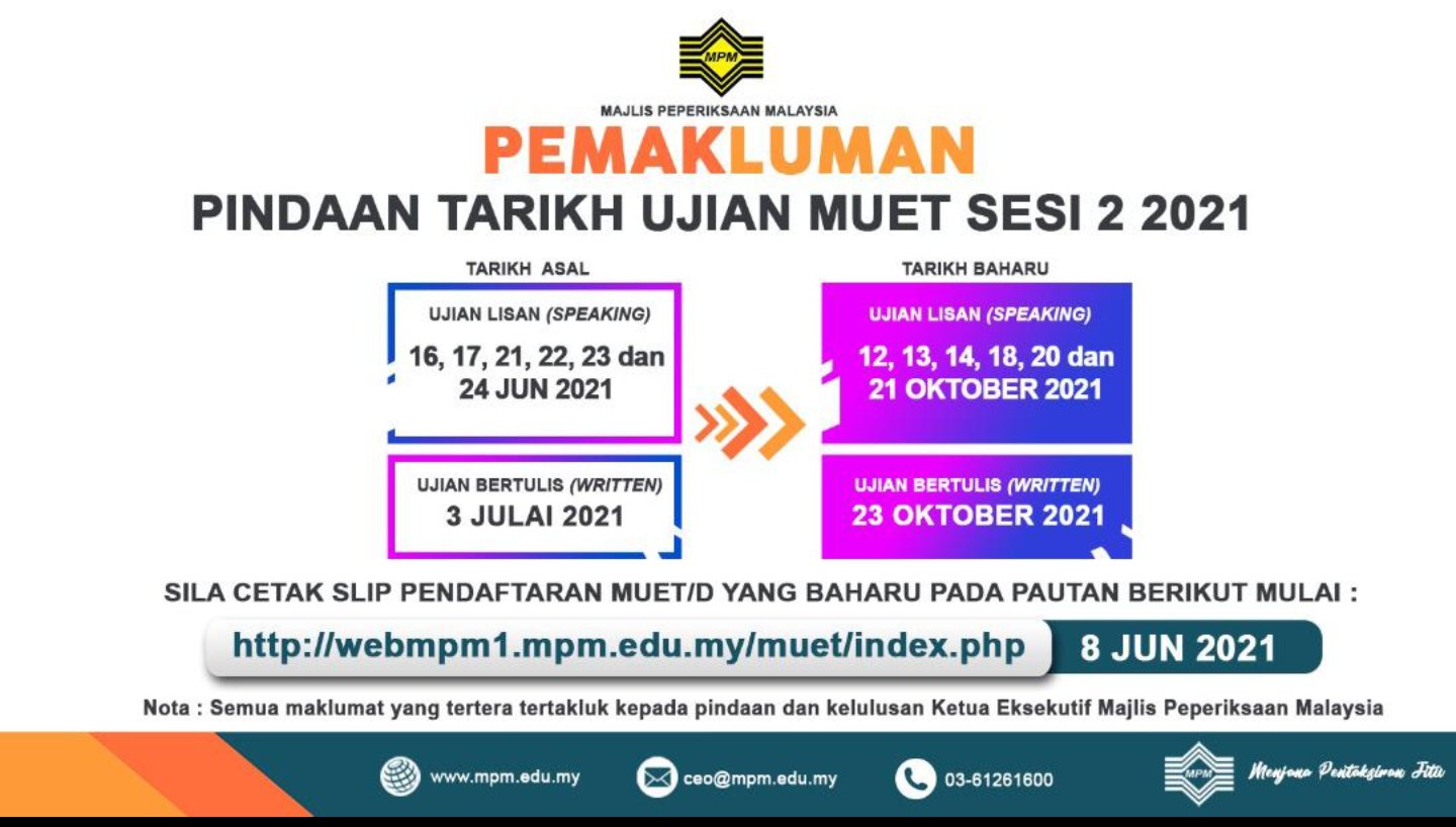Semakan Keputusan Muet 2022 Sesi 2 Tahun 2021