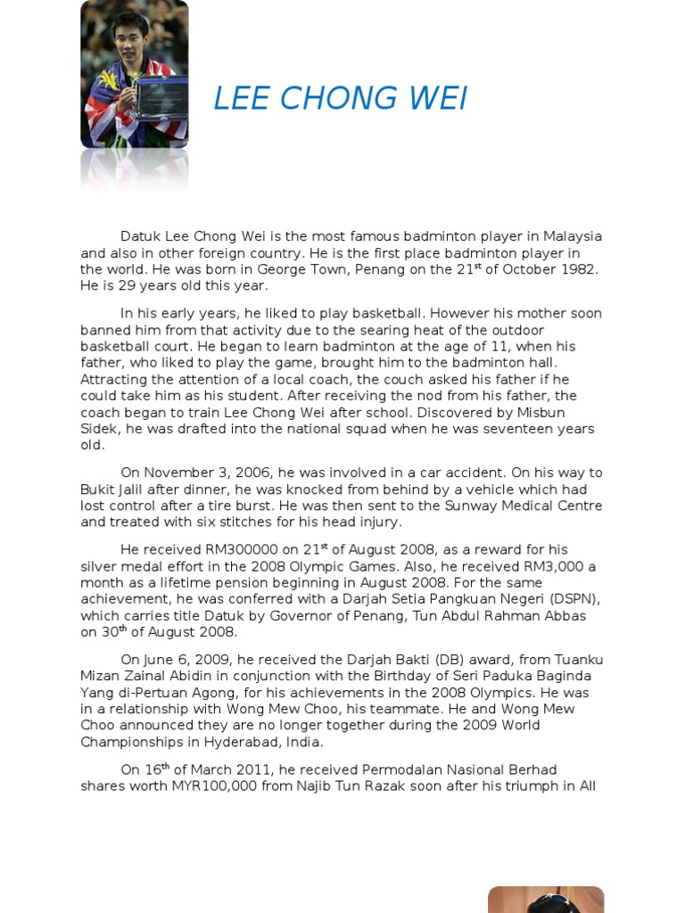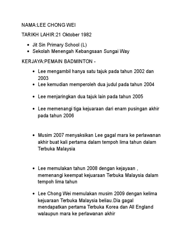 Doc Biodata Datuk Lee Chong Wei Zaimah Anuar Academia Edu